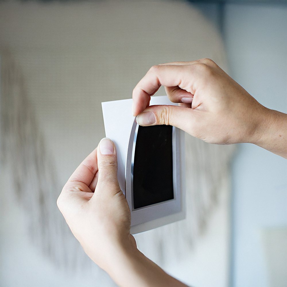 Naudojimas: Numatykite norimą pėdutės vietą paveiksle. Išimkite dažus iš pakuotės ir įsitikinkite, kad juos laikote teisinga kryptimi – raudonu langeliu į apačią. Dažų lapelį padėkite įspaudo vietoje ir ant jo priglauskite kūdikio pėdutę, lengvai spustelkite. Atkelkite kojytę ir dažų lapelį.