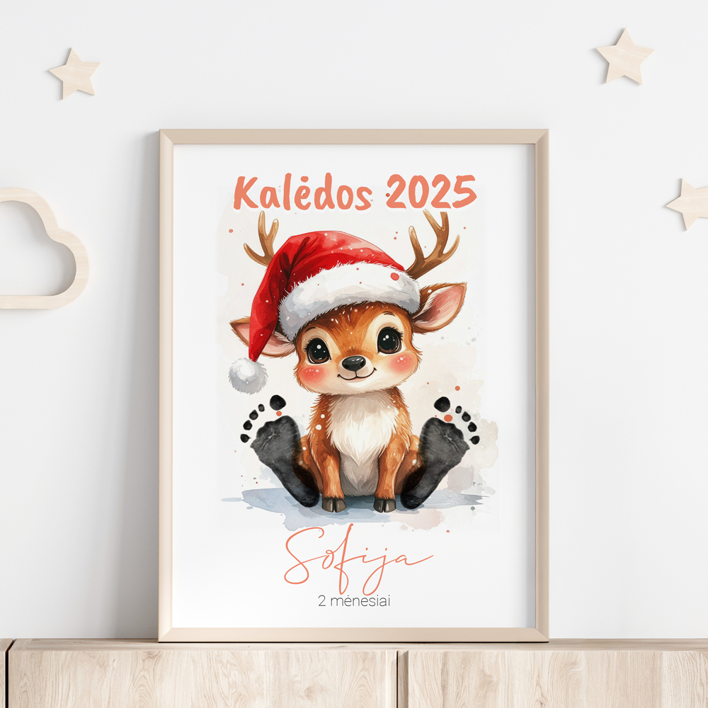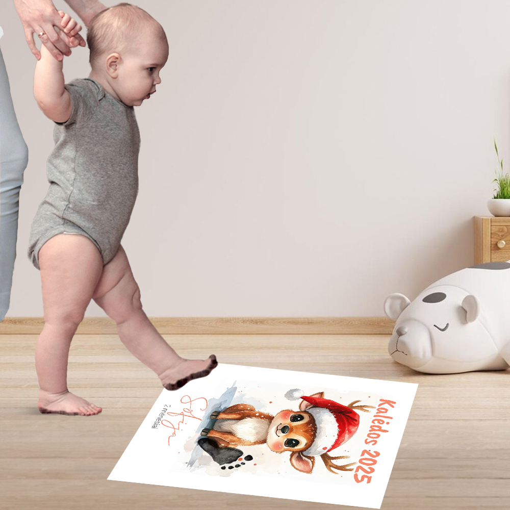 Pėdučių įspaudų paveikslas. Personalizuotas kūdikio pėdučių paveikslas su iliustracijomis – tai originali, jauki ir išskirtinė dovana tėveliams ar seneliams, kuri papuoš kiekvieno namus ir taps išskirtiniu prisiminimu. Pasirinkto paveikslo vietoje priglauskite vaikučio pėdutes išteptas dažais. Siekiant išgauti geriausią efektą, atkreipkite dėmesį, kad visas kojytės paviršius būdų priglaustas. Prieš dedant įspaudus ant paveikslo, rekomenduojame pasibandyti ant paprasto popieriaus.