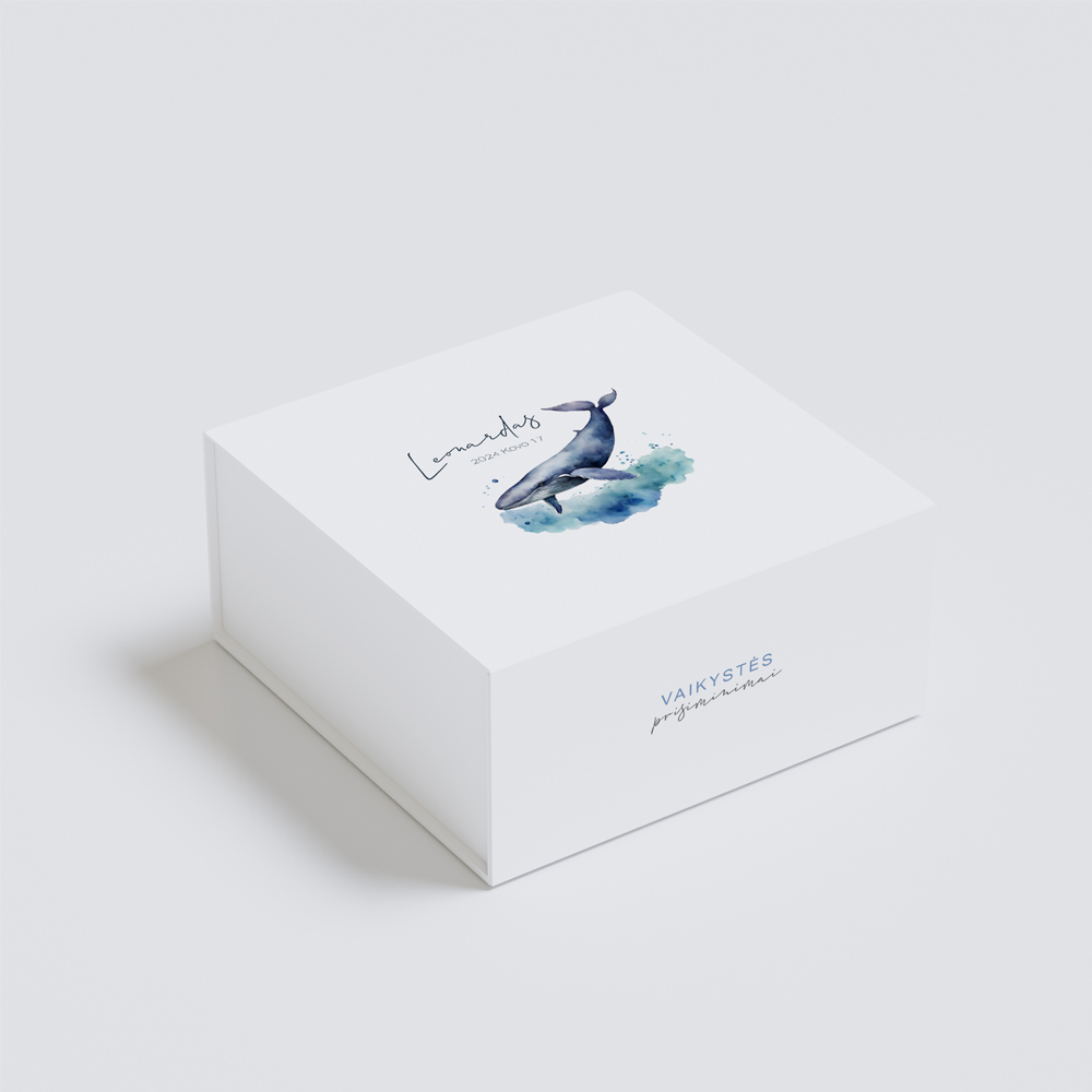 Prisiminimų dėžutė. Ši dėžutė pasižymi su jūsų pasirinkta iliustracija ir parašytu kūdikio vardu. Tai puiki dovana šeimai, kuri nori išsaugoti visus pačius brangiausius savo mažylio prisiminimus. Tokius kaip mažylio nuotraukos, pirmieji batukai, augimo raidą žyminčios kortelės, knygelės ir kiti mieli kūdikio daikteliai.